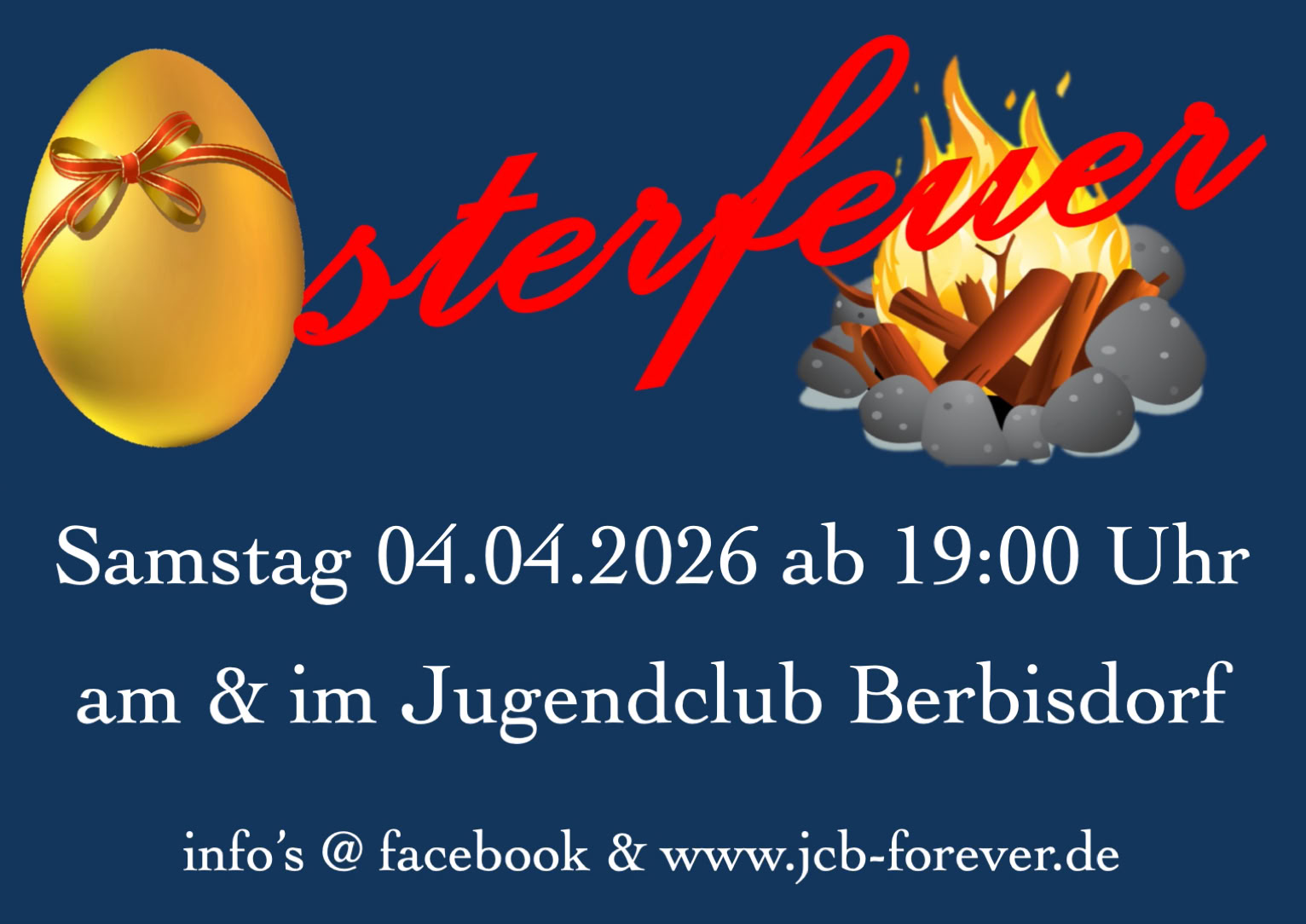 Bald ist Ostersamstag. Wir organisieren wieder unser Osterfeuer. Ab 19:00 Uhr geht es draußen mit Leckerein vom Grill, verschiedensten Getränken und natürlich dem Feuer los. Spätestens 22:00 Uhr starten wir drinnen mit Disco. Wir freuen uns auf Euch …