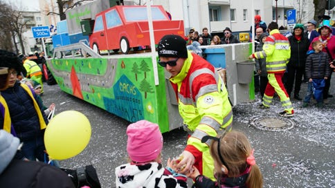 Hier kommen wir ins Spiel. Seit 2002 konnten wir das „Danebenstehen“ nicht mehr ertragen. Wir wollten unseren eigenen Umzugswagen bauen. Schnell war der alte Anhänger von einer Gruppe die nicht mehr mitmachen wollte organisiert. Dann haben wir einfach mal los gebastelt. Unser erster Wagen fuhr unter dem Motto „Tv – Gott Total“ und war an Stefan Raab’s Fernsehshow angelehnt. Das war alles nicht sehr professionell aber dabei sein ist ja bekanntlich alles. Im darauf folgenden Jahr haben wir auch nur die Wettertauglichkeit unseres Umzugsbildes bestätigt bekommen. Danach hatten wir ein Jahr Zwangspause, da wir nicht wussten, wie und vor allem wo wir unseren Anhänger zusammenbauen sollten.