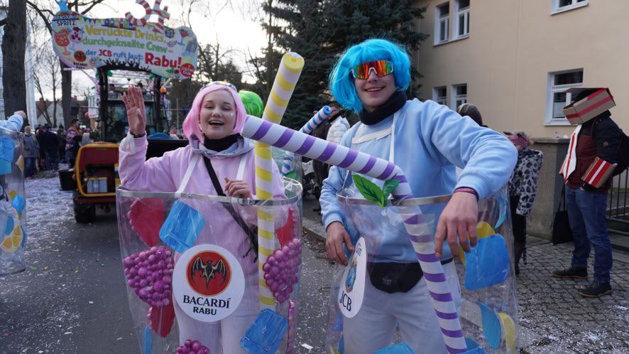 Am 15.Februar 2026 waren wir einer der 83 Wagen des großen Faschingsumzuges in Radeburg. Als lecker Cocktails sind wir durch die Straßen gezogen. Es war uns, wie immer, eine Freude! Ein paar Bilder findet Ihr noch in der Galerie und rech zeitnah auch ein Video auf YouTube …
